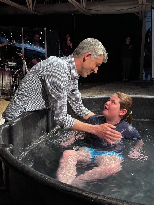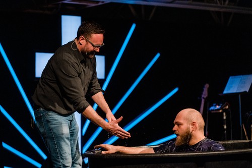 - Full immersion: We baptize by fully immersing the person in water.